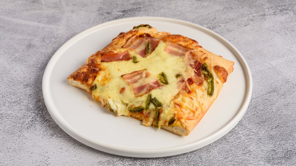 Με σάλτσα ντιμάτας, gouda, πεπερόνι, μανιτάρια και bacon