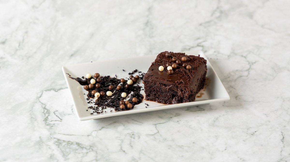 Βάφλα με πραλίνα, κομματάκια από μαύρα μπισκότα γεμιστά με κρέμα βανίλια, σιρόπι σοκολάτας και πολύχρωμα κουφετάκια με σοκολάτα γάλακτος