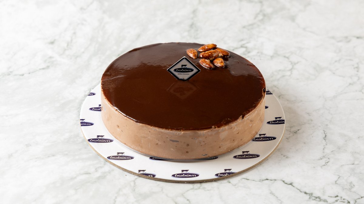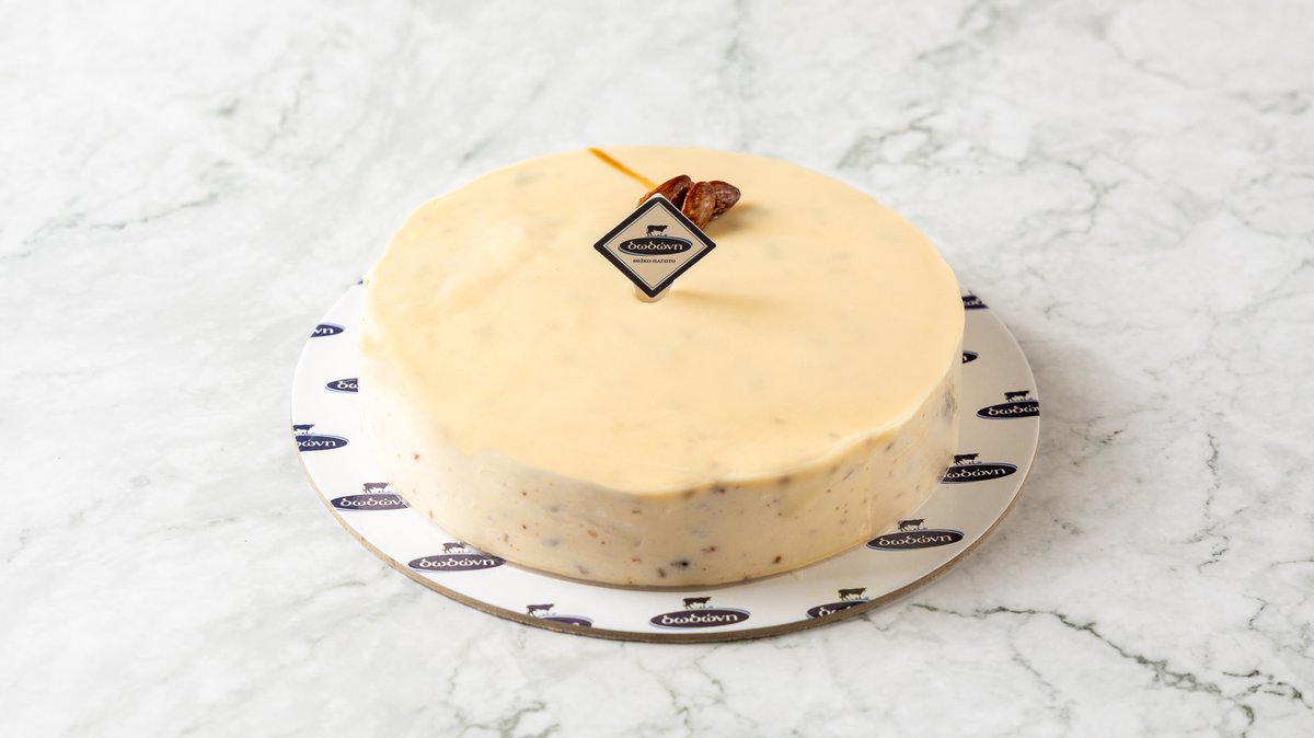 Bάφλα με πραλίνα, 1 μπάλα παγωτό Παρφέ Φουντούκι Πραλίνα Φουντουκιού και καραμελωμένα αμύγδαλα