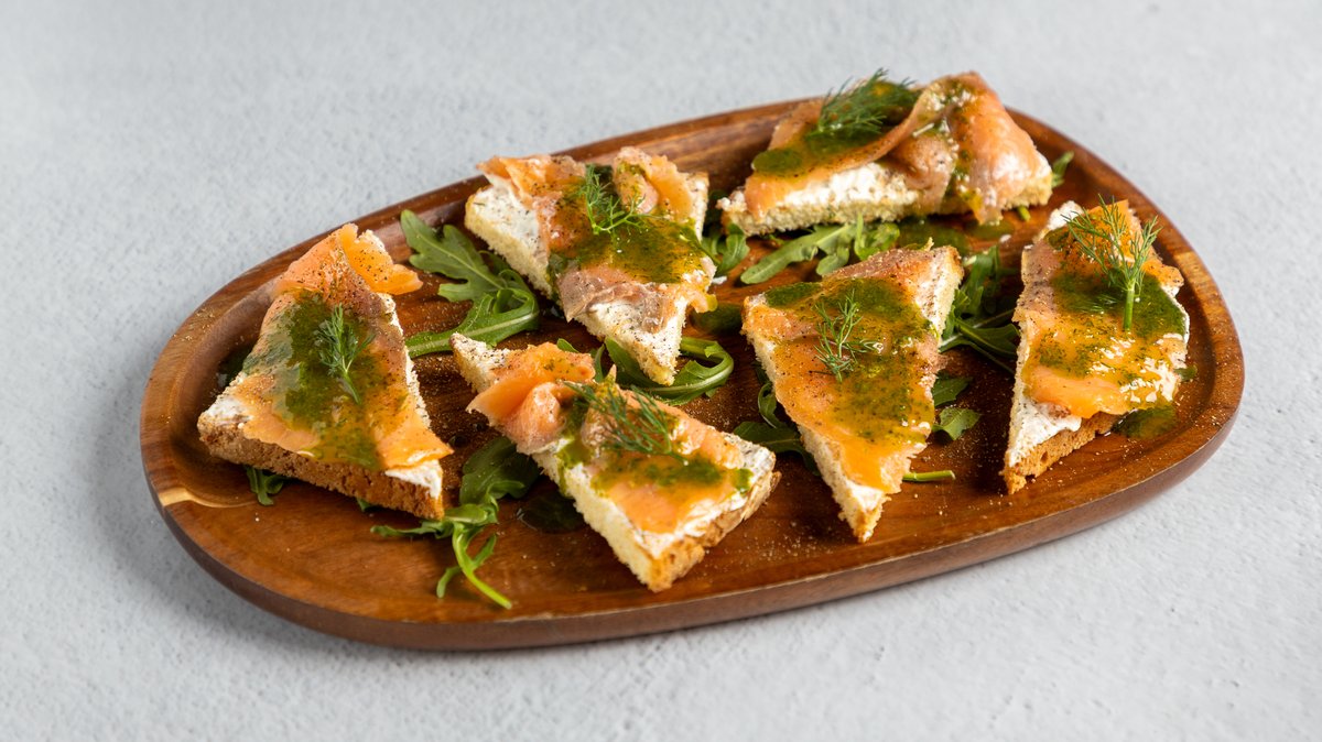 Με σολομό, τυρί κρέμα, λάδι άνηθου και lime