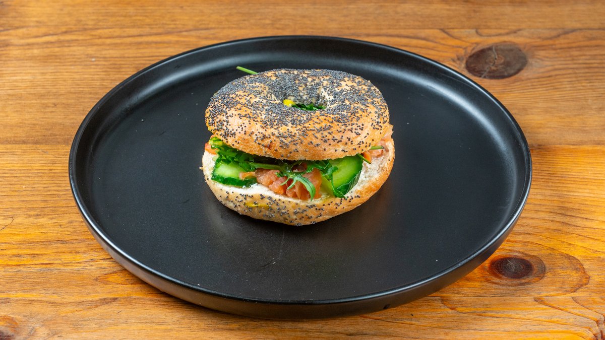 Με Philadelphia, σολομό, αγγούρι, avocando, ρόκα και ξύσμα λεμόνι