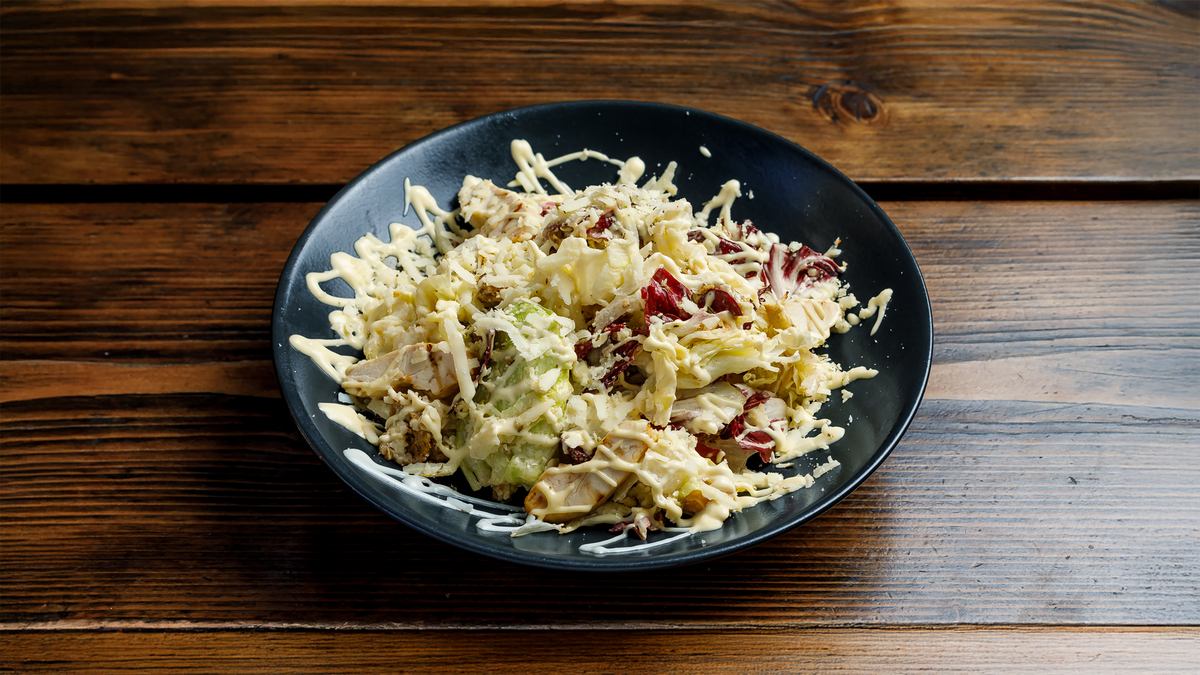 με κοτόπουλο, mix iceberg, μαγιονέζα και ντομάτα