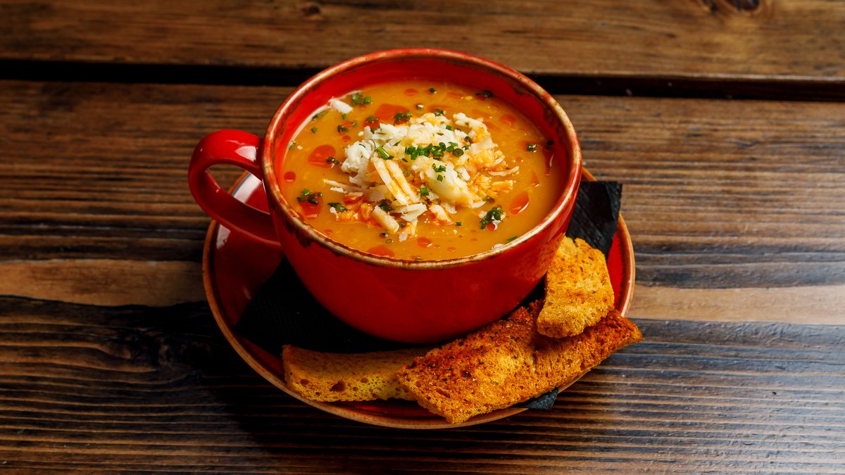 Με ginger, γαρνιρισμένη με κρουτόν και θυμαρίσια γραβιέρα