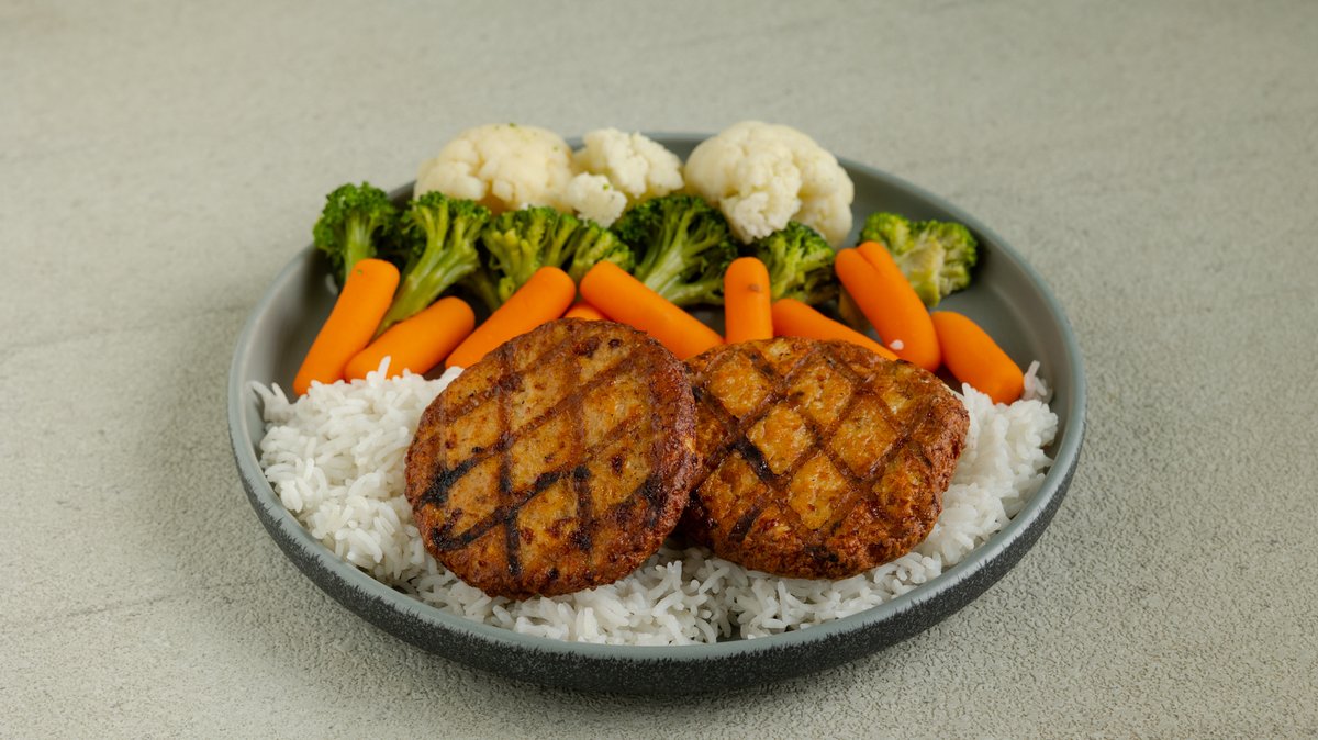 Μπιφτέκια Κοτόπουλο με Ρύζι Μπασμάτι και Ανάμεικτα Λαχανικά - FM