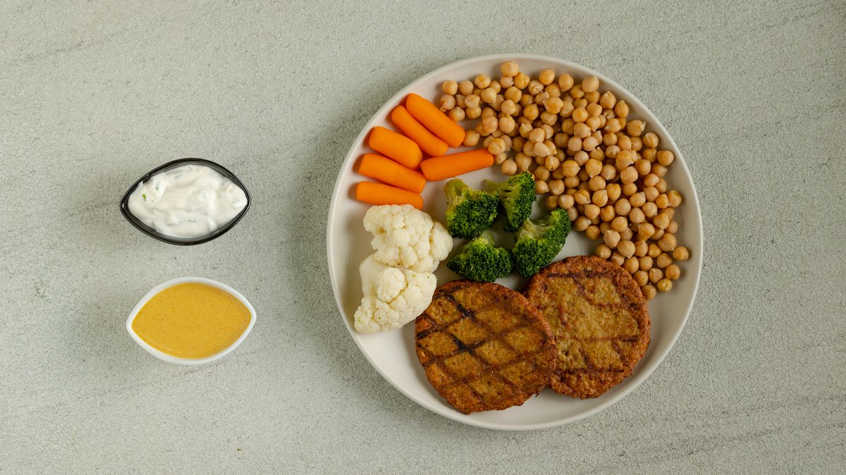 Φτιάξε το δικό σου flexy meal. Περιέχει διατροφικό μπιφτέκι γαλοπούλας (120g) power in meat από 100% κιμά γαλοπούλας, υδατάνθρακα (150g), λαχανικά (100g)