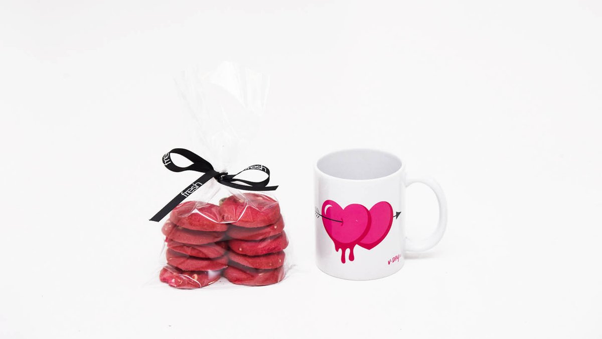 2 Χειροποίητα μπισκότα βανίλιας με κομμάτια βέλγικης σοκολάτας σε κόκκινο χρώμα με μήνυμα αγάπης «Love». *Περιέχουν ίχνη από γάλα, αυγό, σόγια, γλουτένη και ξηρούς καρπούς. Για περισσότερες πληροφορίες, παρακαλούμε όπως επικοινωνήσετε μαζί μας.