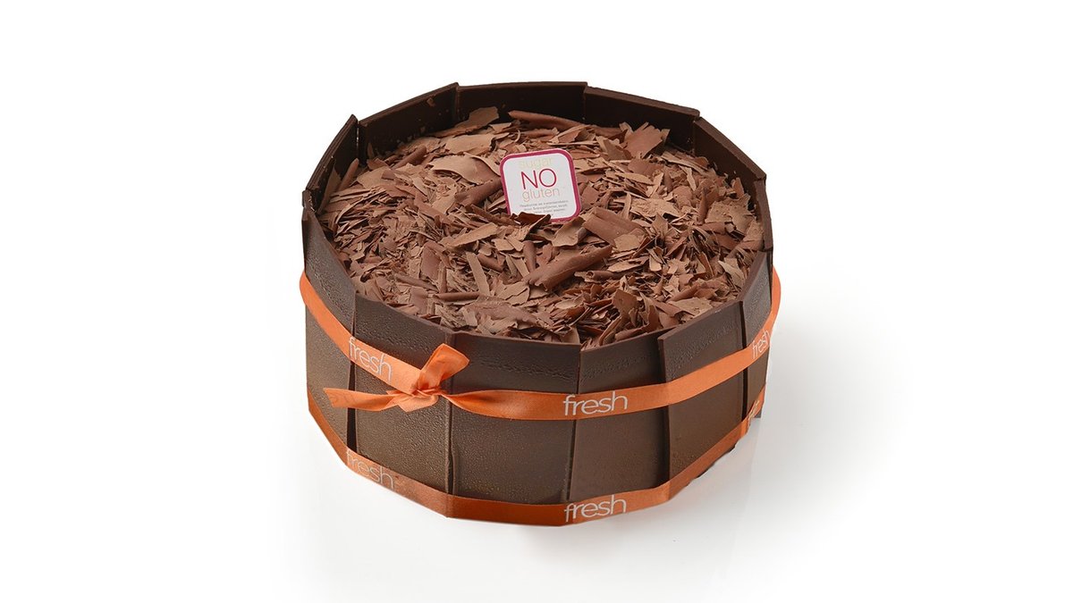 Κέικ διπλής σοκολάτας χωρίς προσθήκη ζάχαρης και χωρίς γλουτένη, με επικάλυψη απο γλάσο σοκολάτας και crue de cacao. * Περιέχουν ίχνη από γάλα, αυγό, σόγια, γλουτένη και ξηρούς καρπούς. Για περισσότερες πληροφορίες, παρακαλούμε όπως επικοινωνήσετε μαζί μας.