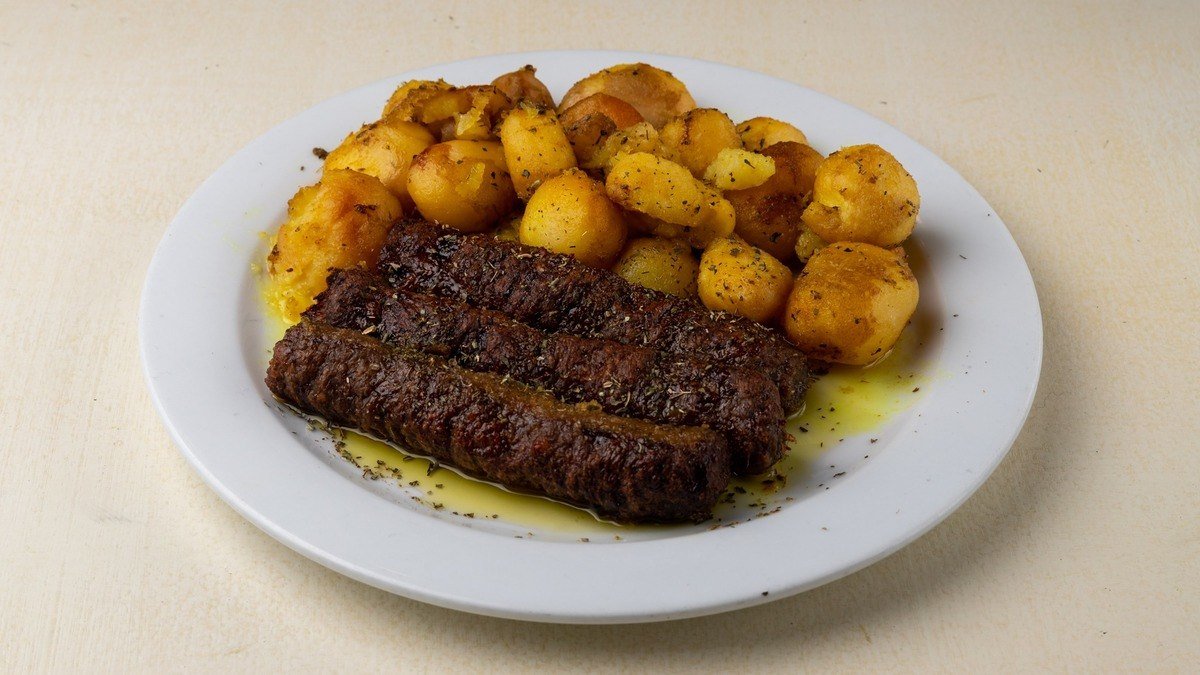 Με κιμά από αρνάκι, χοιρινό και μοσχάρι. Με γαρνιτούρα της επιλογής σου