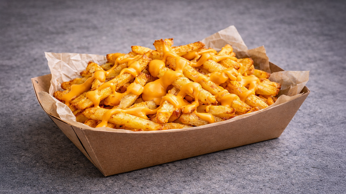Super Crunchy Skin on Τηγανητές Πατάτες με Mix Μπαχαρικών & Cheddar Sauce