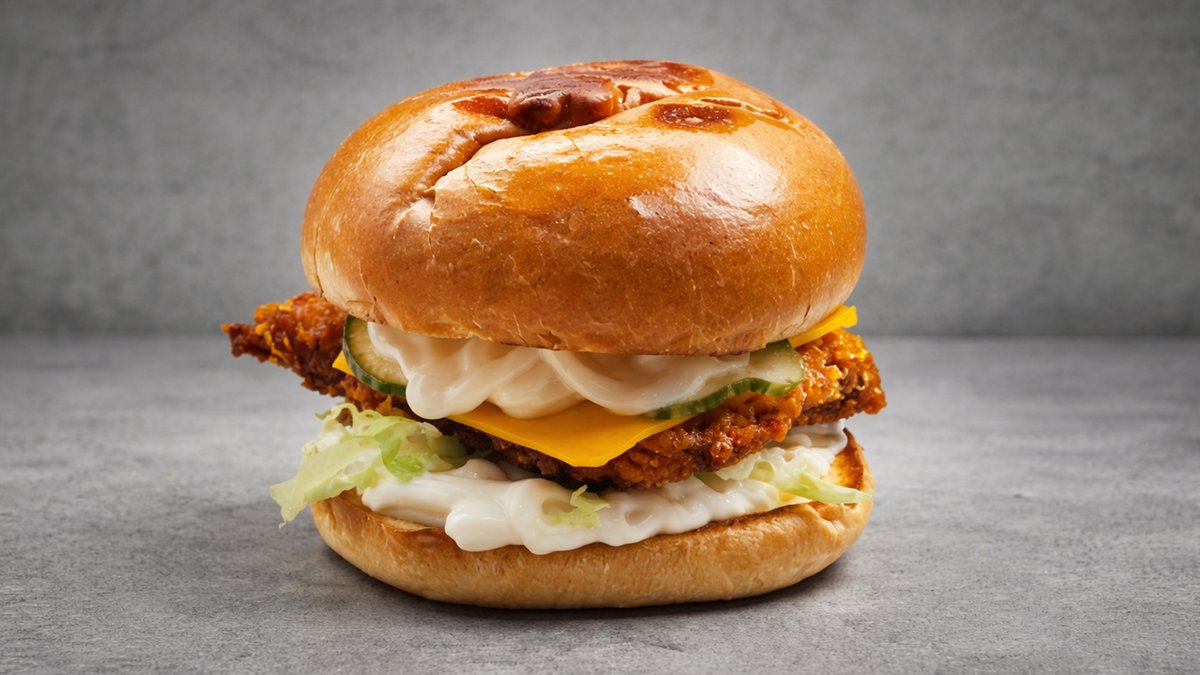 Χειροποίητο Τραγανό Κοτόπουλο, American cheese, Χειροποίητη πίκλα αγγουριού, Iceberg & Μαγιονέζα