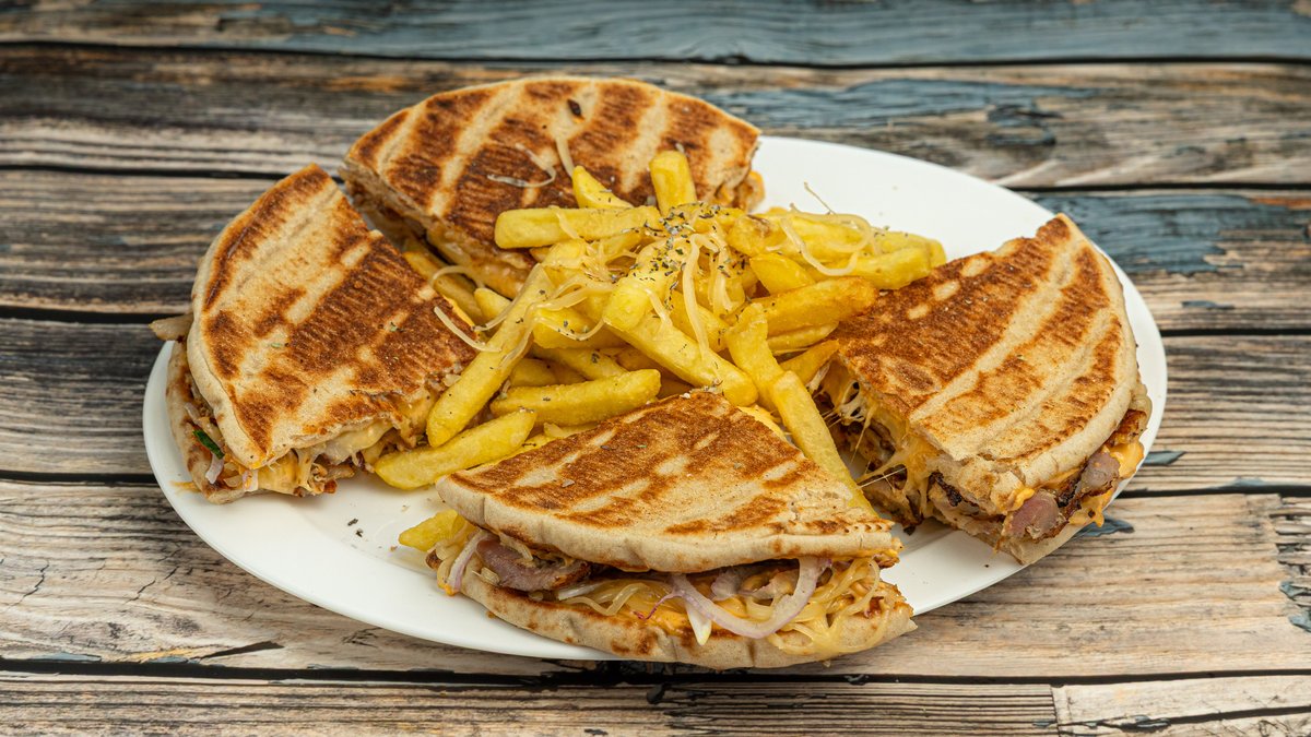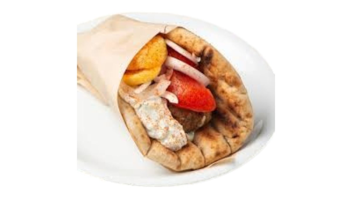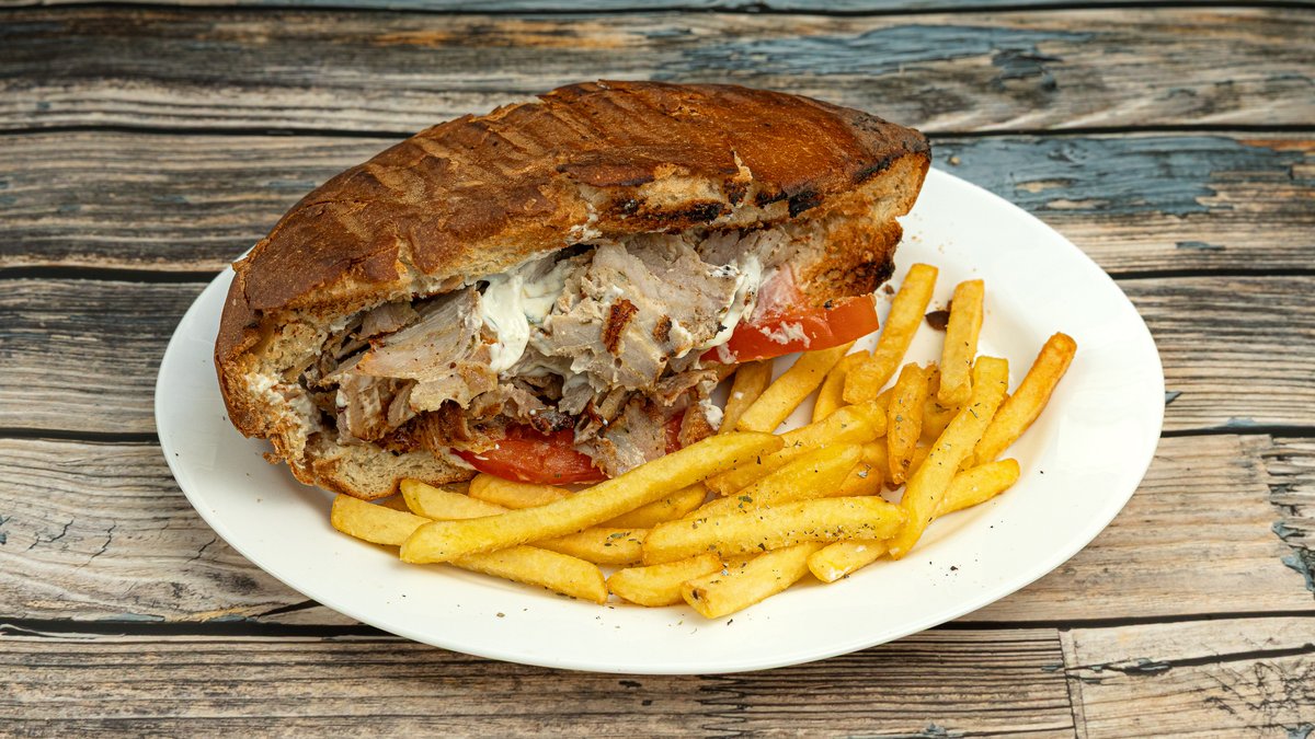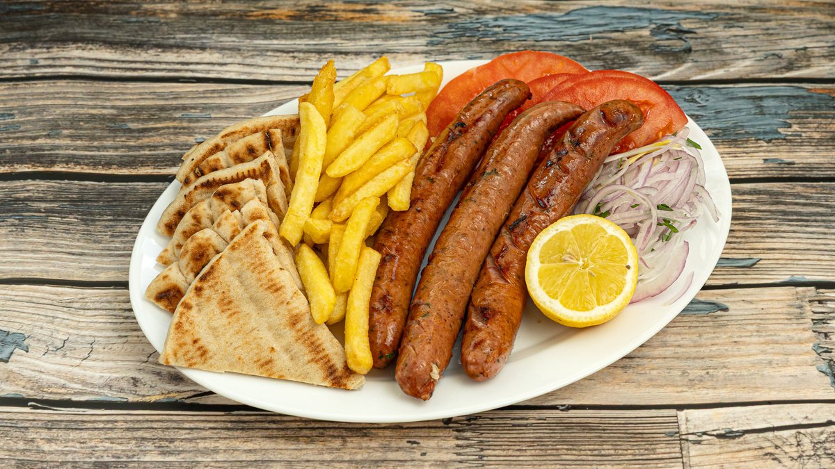 Συνοδεύεται από ντομάτα, κρεμμύδι, τζατζίκι, πατάτες και πίτες