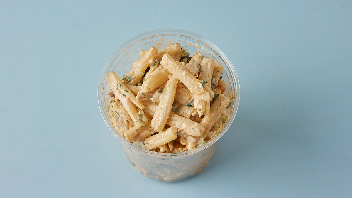 Μακαρονοσαλάτα, τόνος, σέλερι, τριμμένο καρότο, ελαφριά sauce γιαουρτιού