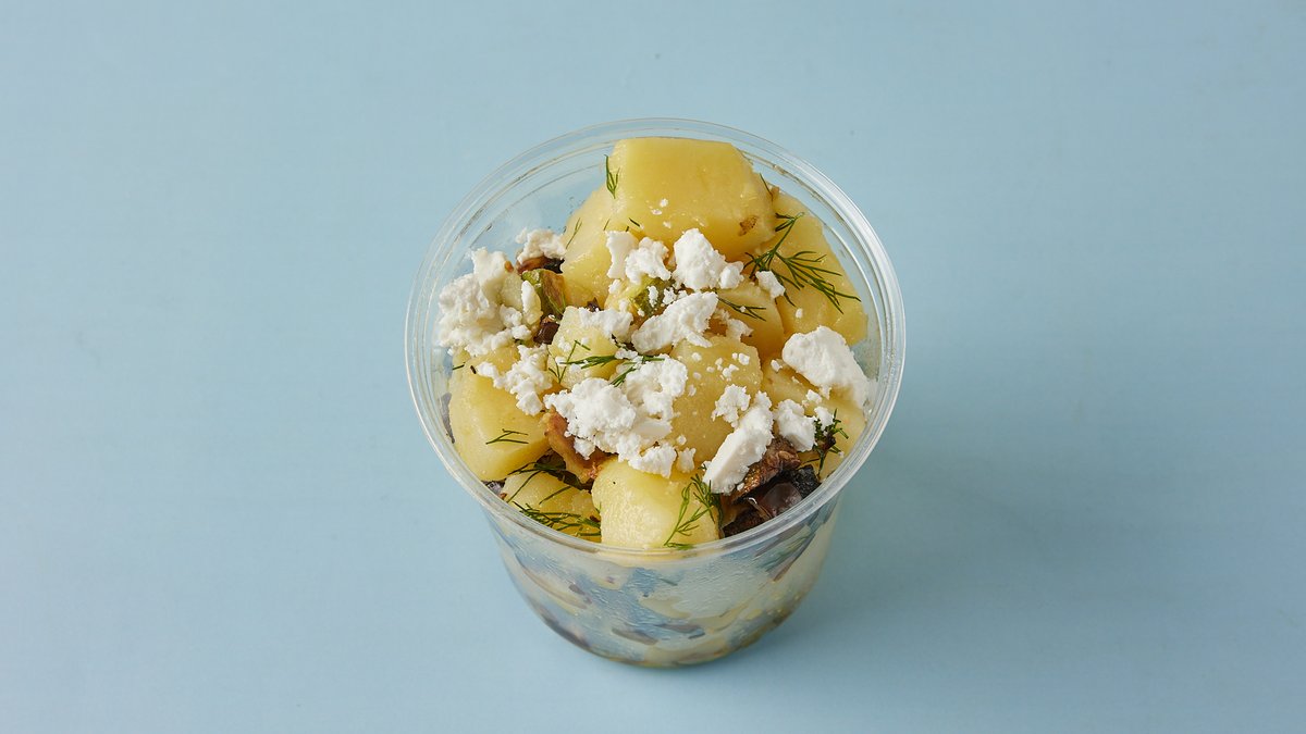 Πατατοσαλάτα, ψητό κολοκυθάκι, ψητή μελιτζάνα, δυόσμος, μαραθόριζα, τριμμένη φέτα