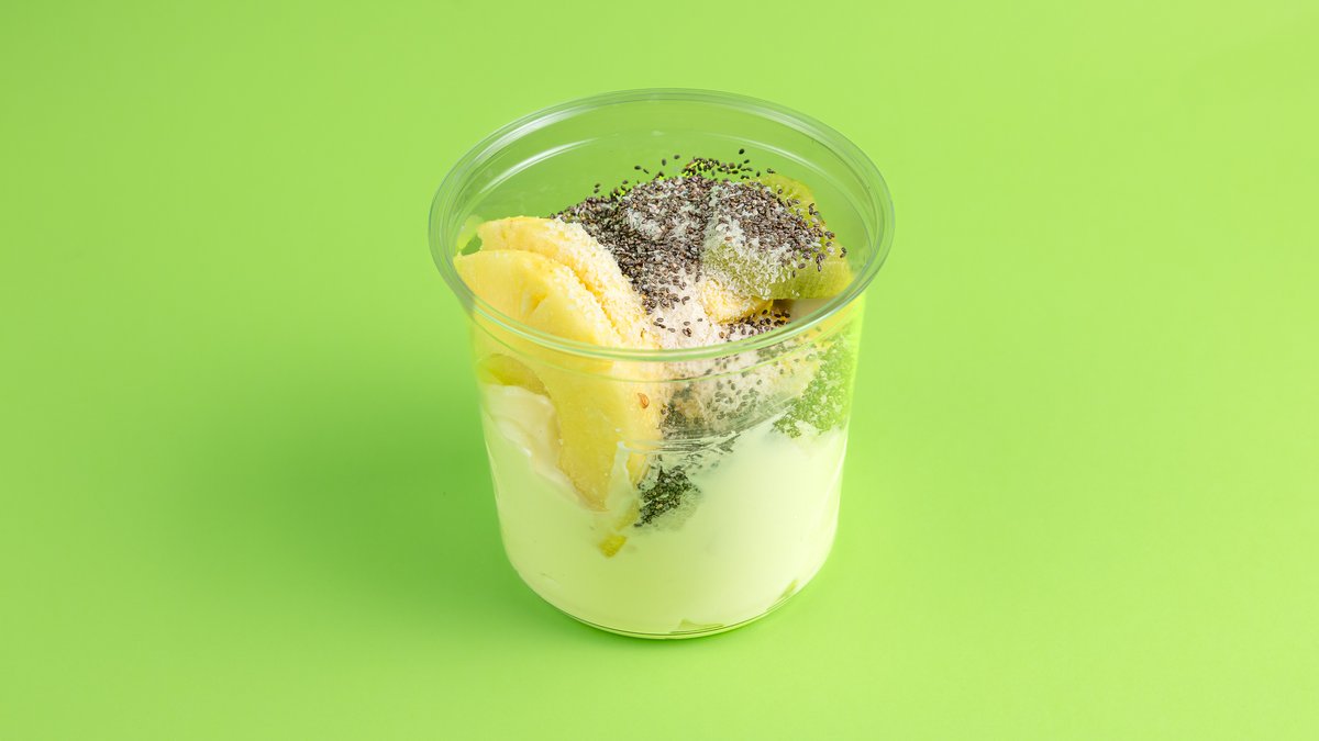 Με γιαούρτι, mango, ανανά, ακτινίδιο, σπόρους chia και νιφάδες καρύδας