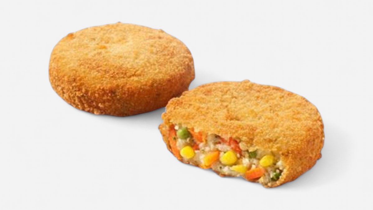 Με μπιφτέκι λαχανικών, ντομάτα, κρεμμύδι, μαρούλι, cheddar, ketchup, μουστάρδα και μαγιονέζα. Συνοδεύεται από πατάτες τηγανητές και σως cocktail