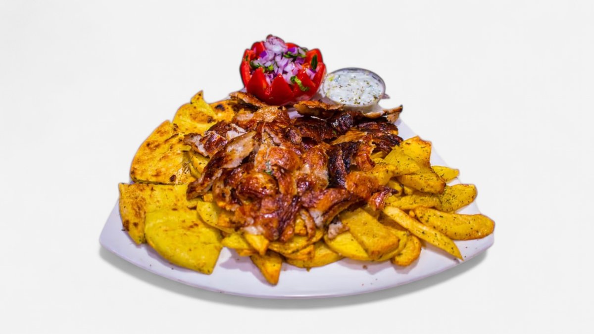 Συνοδεύεται από πατάτες τηγανητές και 2 πίτες. Η τελική τιμή του προϊόντος θα διαμορφωθεί με βάση την ποσότητα που θα επιλέξεις