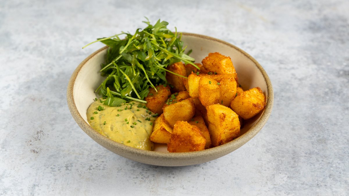 Με καραμελωμένο κρεμμύδι, miso μαγιονέζα, ρόκα και τυρί cheddar