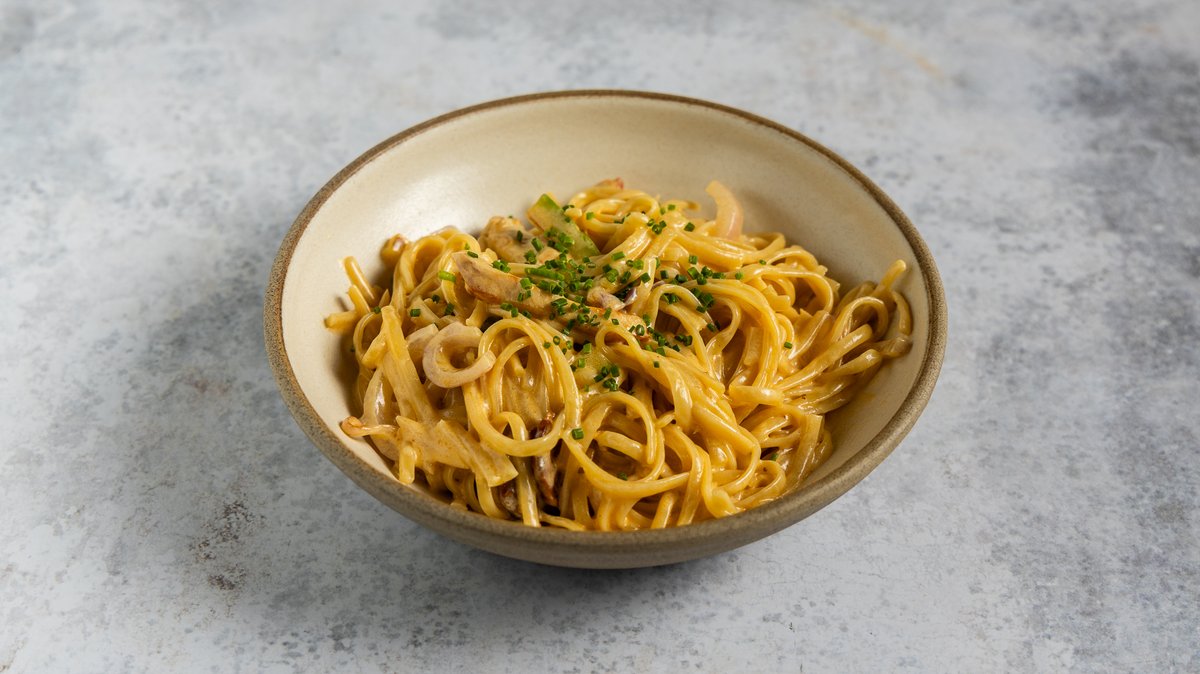 Με τσορίθο, κρέμα γάλακτος, παρμεζάνα, κολοκύθι και κρεμμύδι