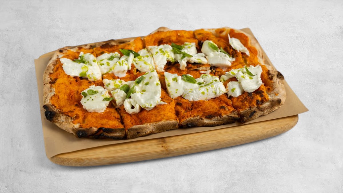 Με κόκκινη σάλτσα, πέστο ρόκας και μοτσαρέλα