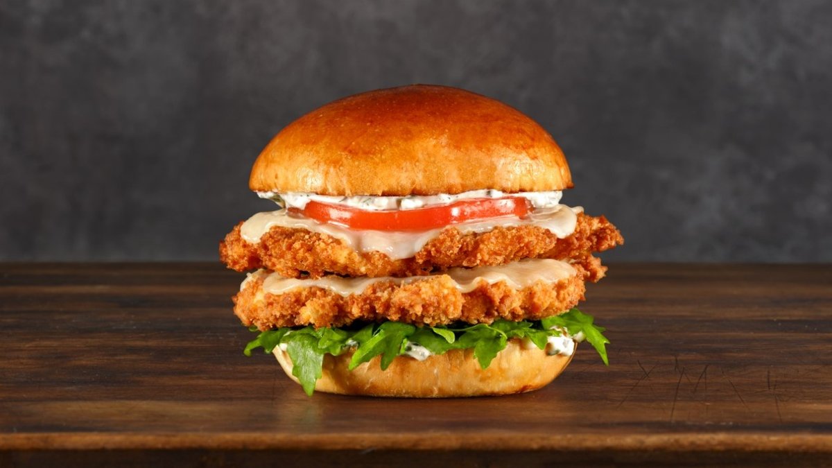 Τραγανό στήθος κοτόπουλου τύπου Milanese επικαλυμένο από λιωμένο τυρί Provolone και σως Aioli. Συνοδεύεται από φρέσκες ντομάτες και ρόκα και σερβίρεται σε φρυγανισμένο παραδοσιακό ψωμάκι και πατάτες τηγανητές.