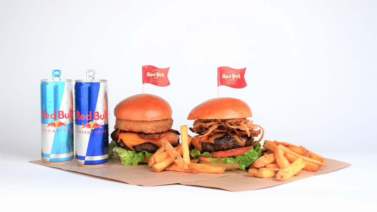 Legendary Smash Burger or our BBQ Bacon Smash Burger | Seasoned Fries | Red Bull or Red Bull Sugarfree.