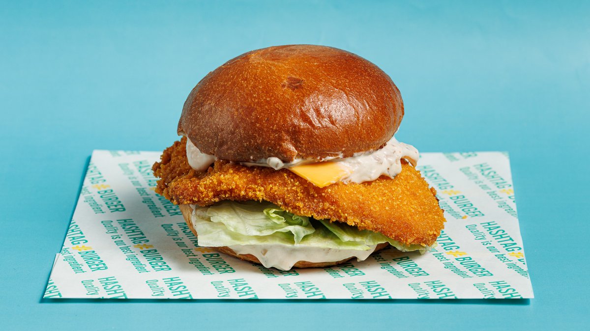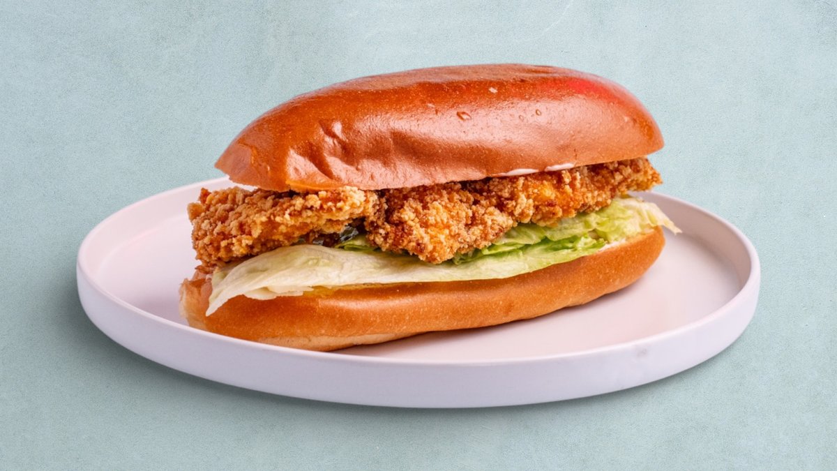 Με φρέσκο στήθος πανέ, secret sause, iceberg και flakes παρμεζάνας