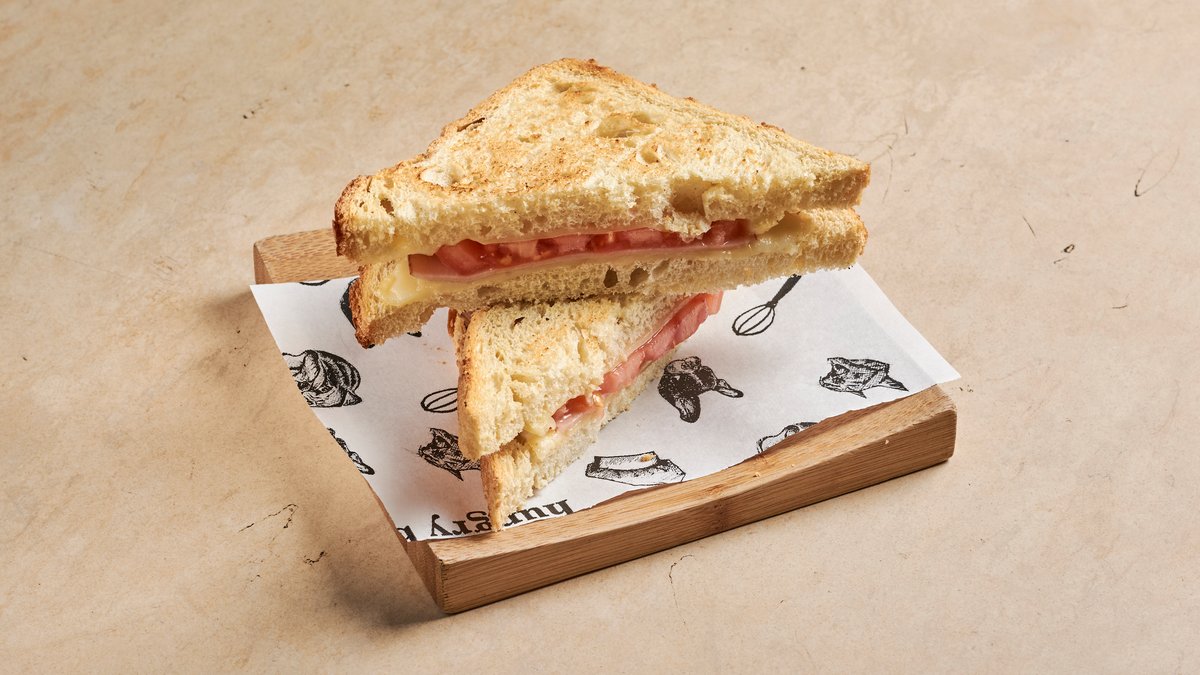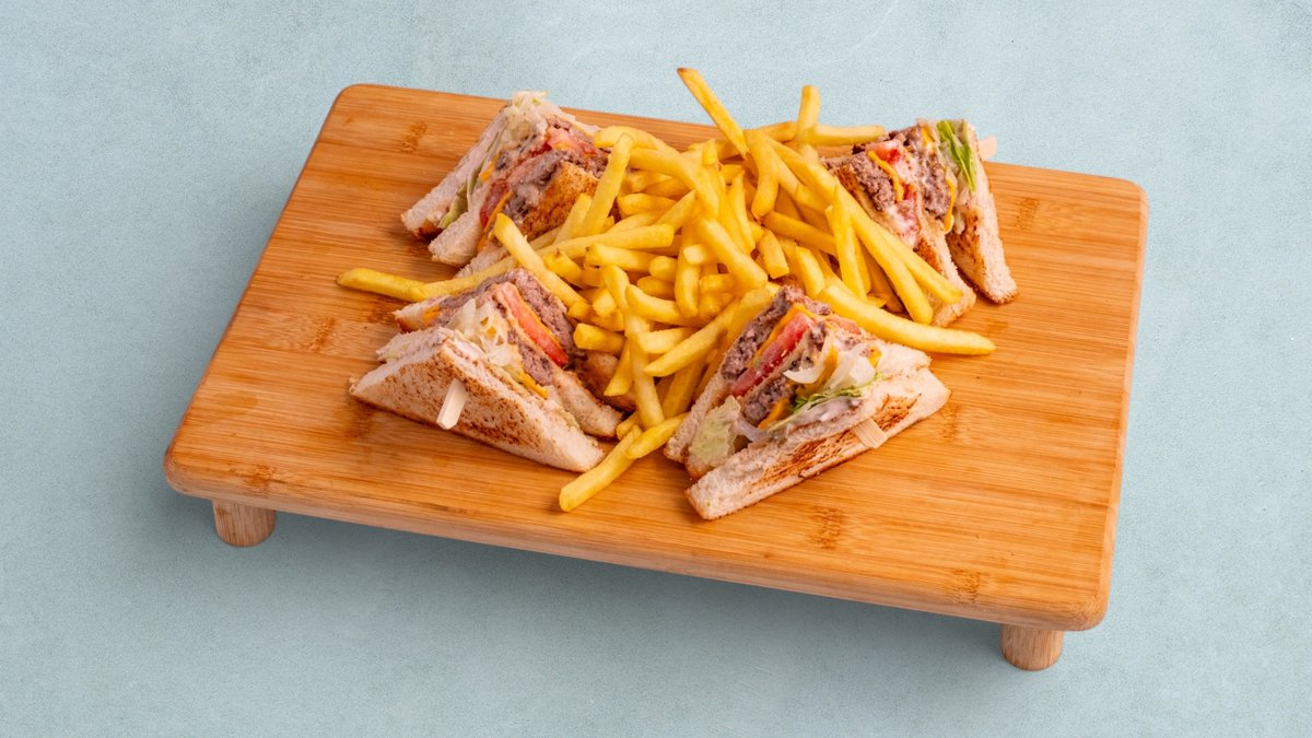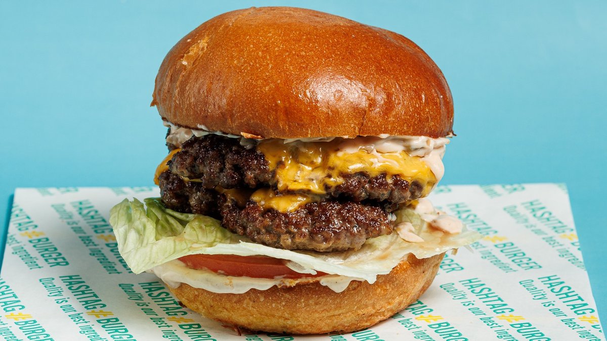 Με φρυγανισμένο ψωμί τοστ, διπλό μπιφτέκι 100% μοσχαρίσιο, cheddar, ντομάτα, iceberg, κρεμμύδι και secret sause