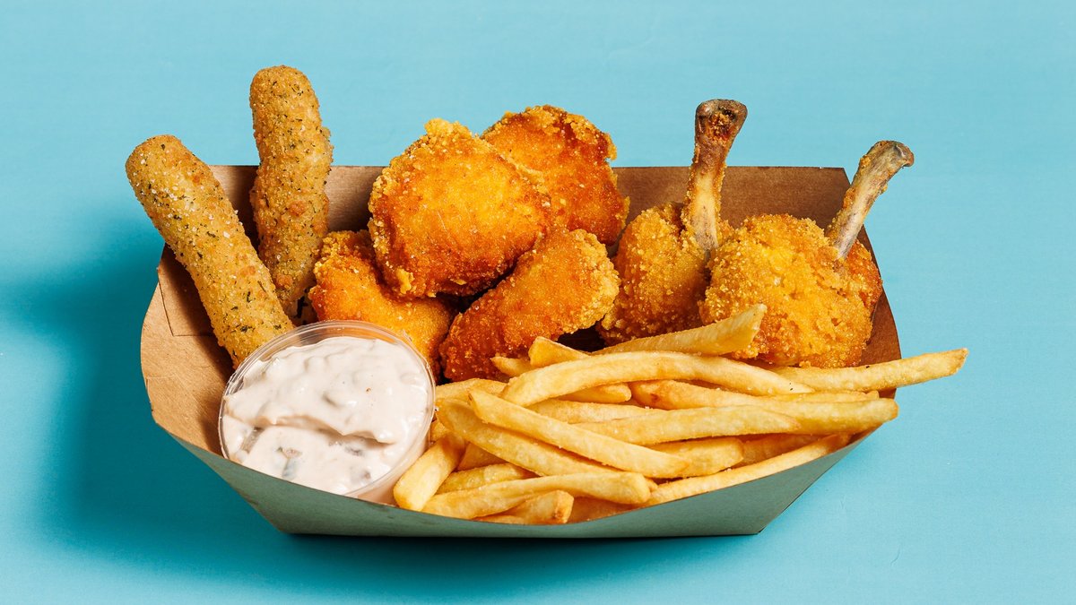 3 Τεμάχια κοτομπουκιές, 3 τεμάχια wings, 3 τεμάχια mozzarella stick και πατάτες τηγανητές