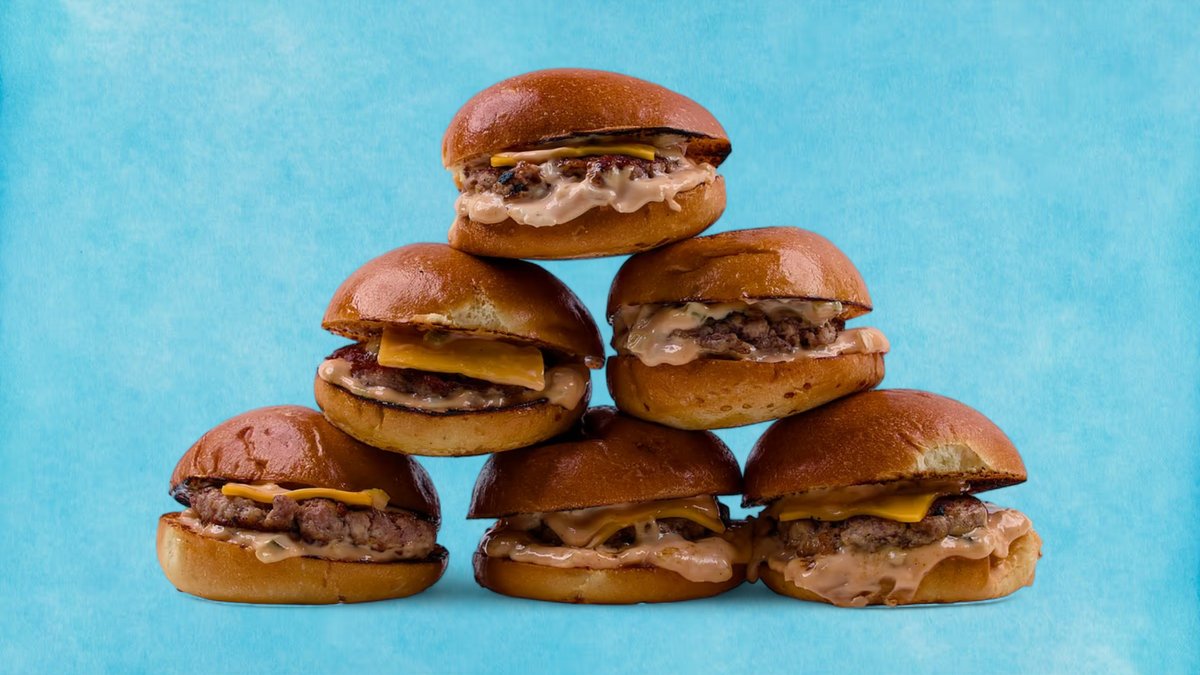 3 Τεμάχια. Mini burgers με 100% μοσχαρίσιο μπιφτέκι, secret sause και cheddar με πατάτες τηγανητές