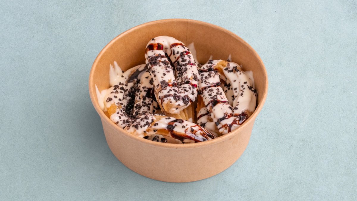 7 Τεμάχια. Με πραλίνα λευκή, σιρόπι σοκολάτας και τριμμένo oreo