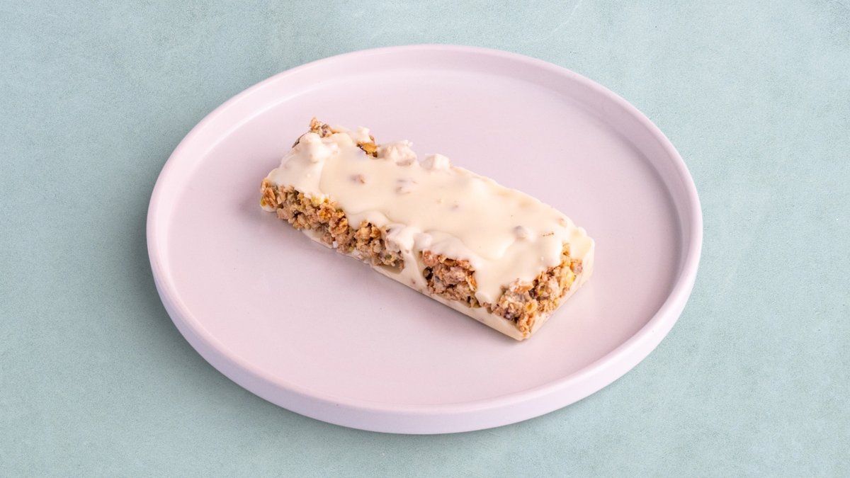Με granola λευκή, φιστίκι Αιγίνης, λευκή σοκολάτα και βρώμη
