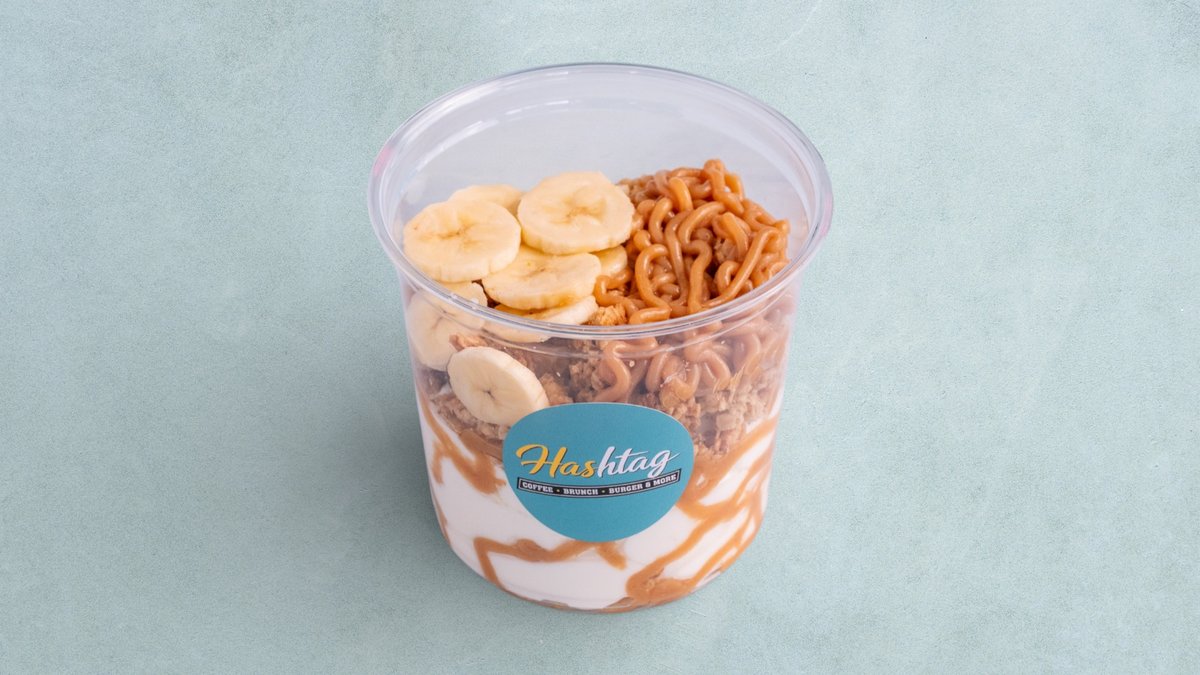Με γιαούρτι 2%, φυστικοβούτυρο, μπανάνα, μέλι και granola σοκολάτας