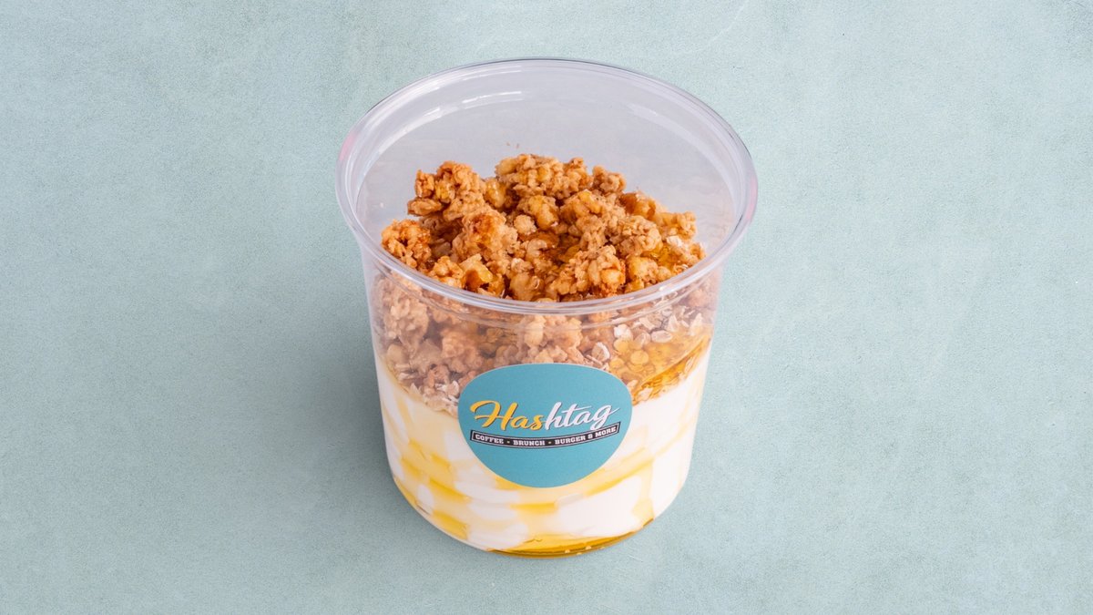 Με γιαούρτι 2%, granola, βρώμη, καρύδια και μέλι