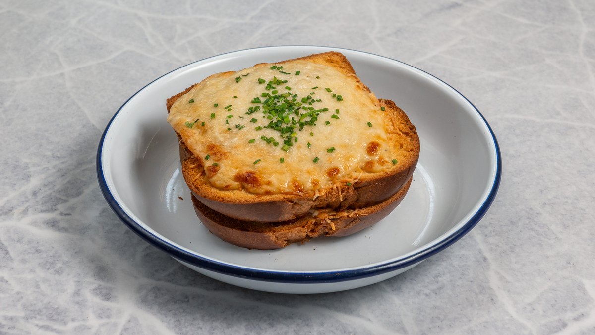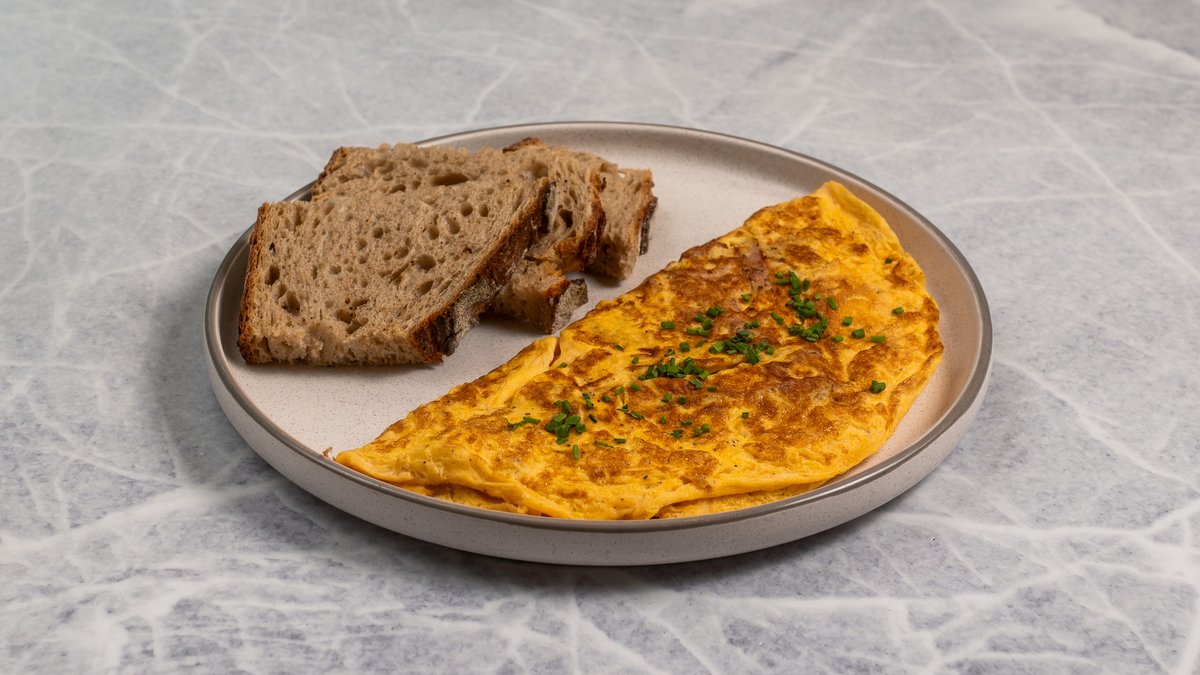 Ομελέτα με μοτσαρέλα ,τσένταρ, χοιρομέρι, προζυμένιο ψωμί