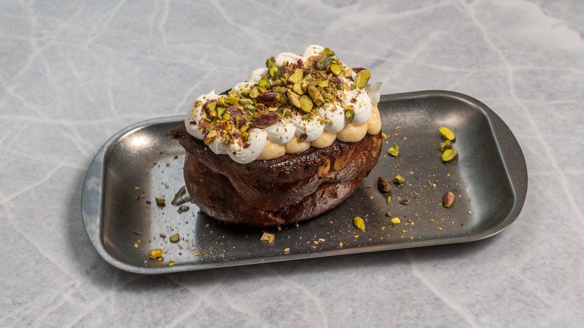 Τσουρέκι, κρέμα patisserie, σαντιγί, φυστίκι Αιγίνης