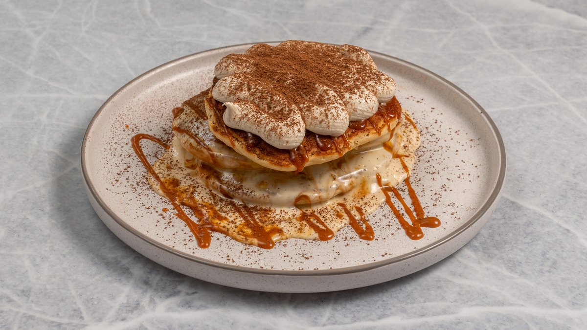 Pancakes, κρέμα τιραμισού, homemade coffee caramel