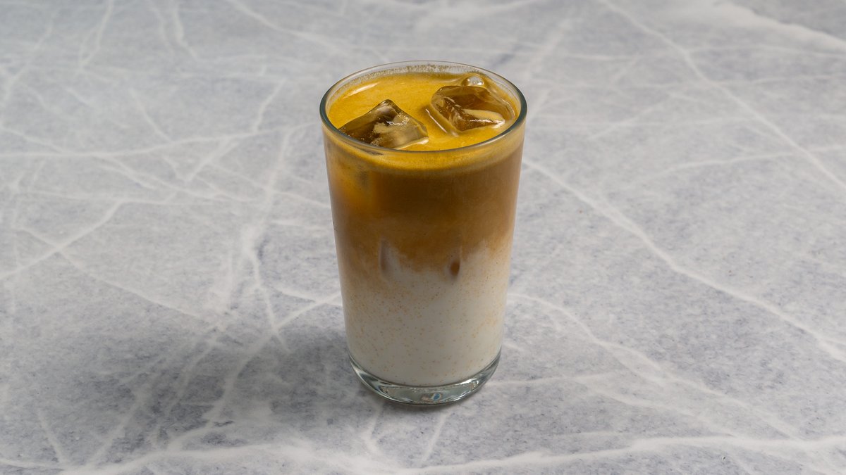 Mε matcha , γάλα βρώμης, ube και αγαύη
