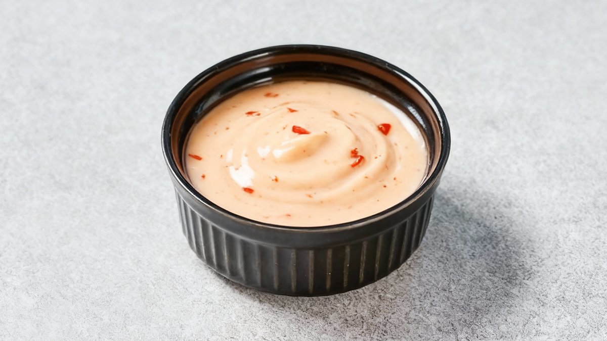 Πικάντικη γαρίδα tempura με γιαούρτι, νιφάδες κρεμμυδιού και avocado. Συνοδεύεται από spicy yogurt dressing