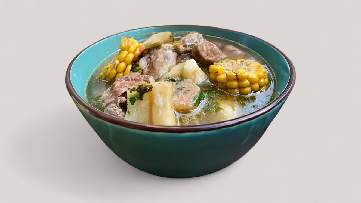 Παραδοσιακή σούπα από την Λατινική Αμερική με 3 ειδών κρέατα κοτόπουλο μοσχάρι και χοιρινό και φρεσκα λαχανικά :πλάτανος καλαμπόκι και γιούκα