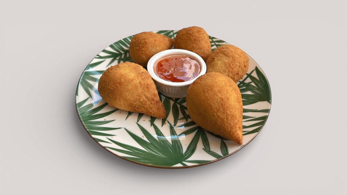 5 κροκέτες γεμισμένες με κρέμα τυριού και κοτόπουλο. Συνοδεύεται από αρωματική πικάντικη σάλτσα sweet chili