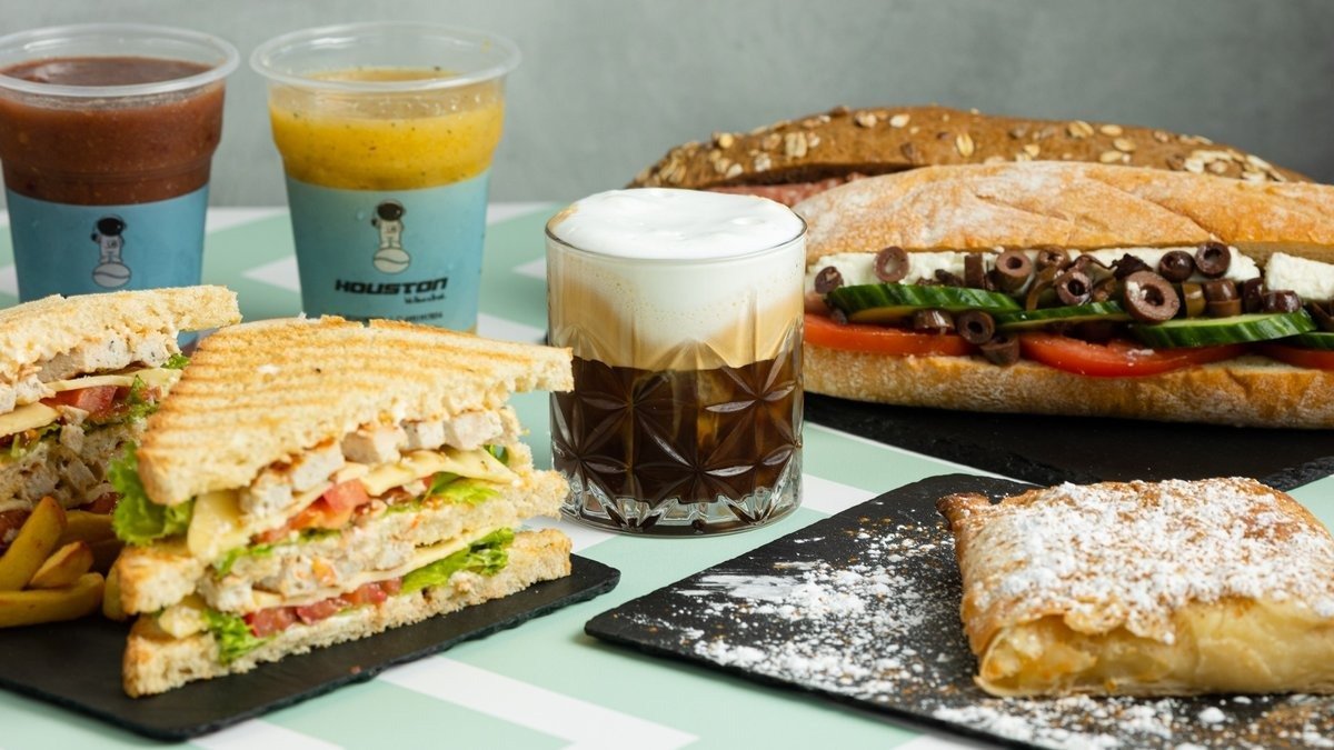 With ham, mayonnaise, tomato, lettuce and gouda. Accompanied by a garnish of your choice