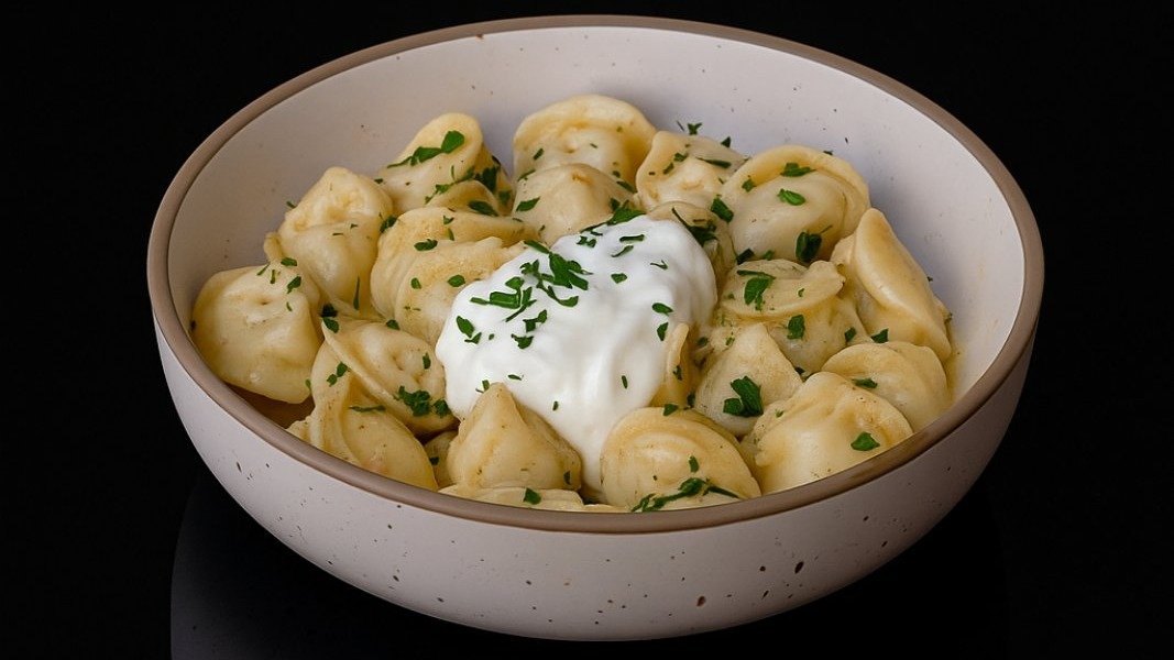 Γεμιστά ζυμαρικά με κιμά μόσχου και χοιρινό, βούτυρο, sour cream και μυρωδικά