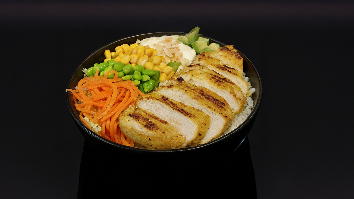 Φιλέτο κοτόπουλου σχάρας, πληγούρι, αβοκάντο, sour cream, spicy καρότο, καλαμπόκι, μιξ σαλάτας, κολοκυθόσπορος, ηλιόσπορος