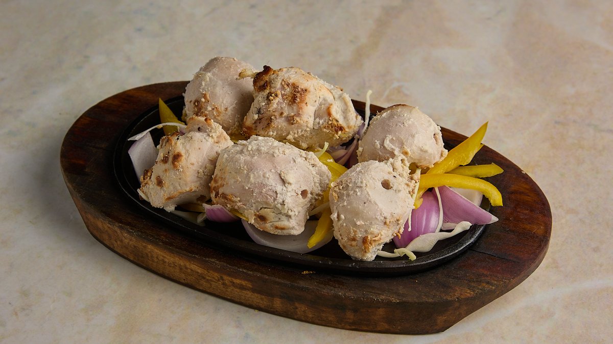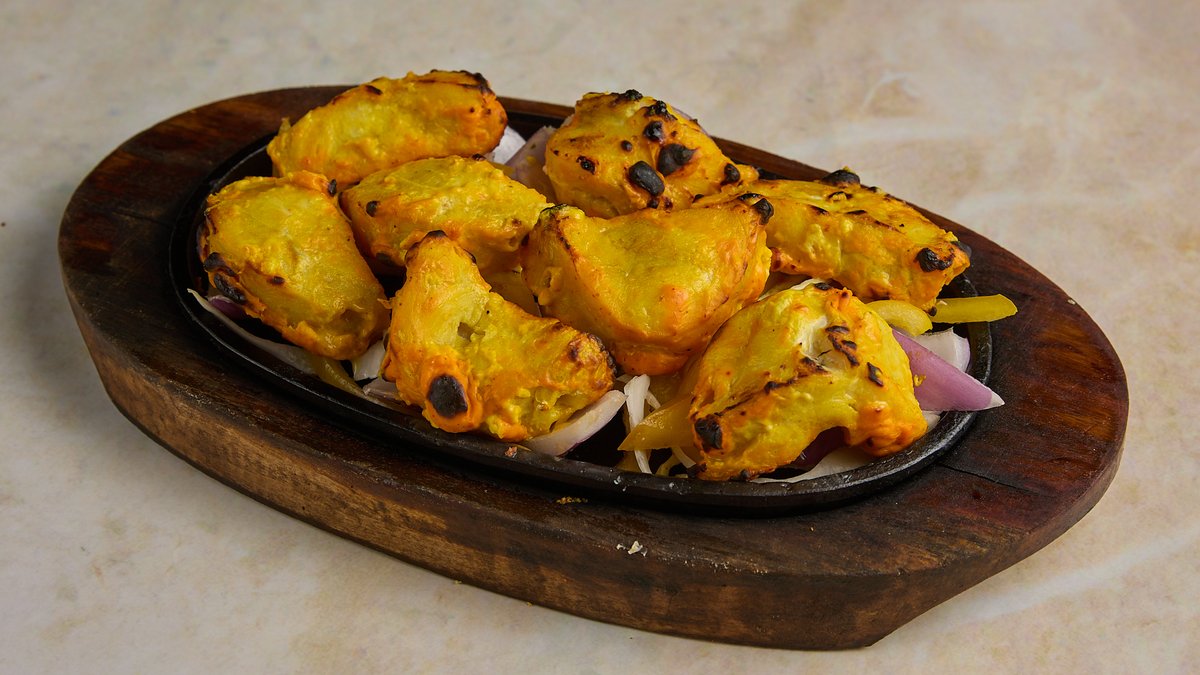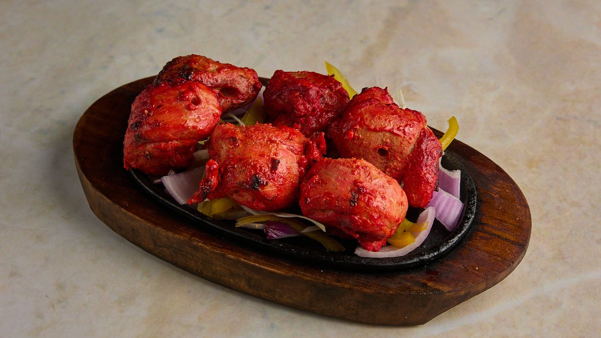 Small chicken pieces marinated in spicy yogurt sauce baked in Tandoori