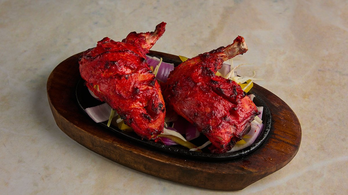Tender chicken marinated with aromatic spices, yogurt and cooked in Tandoori (with bone)