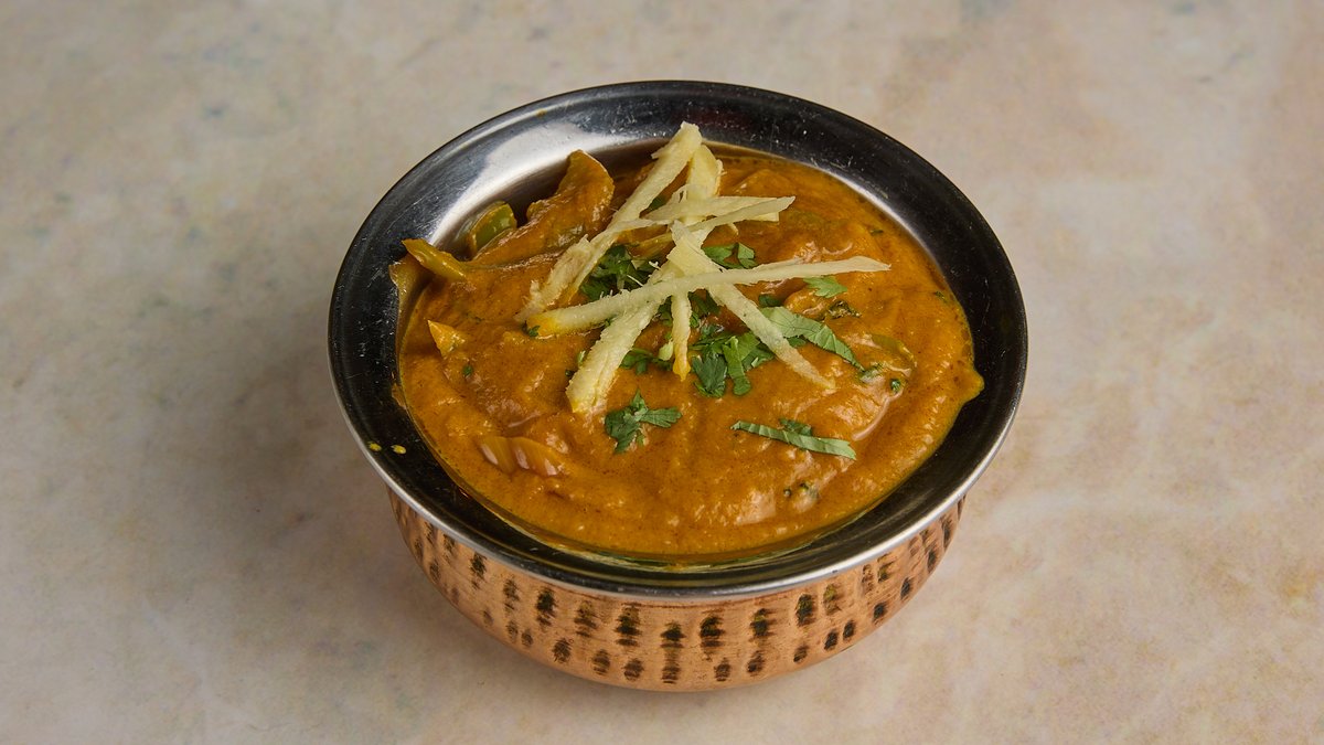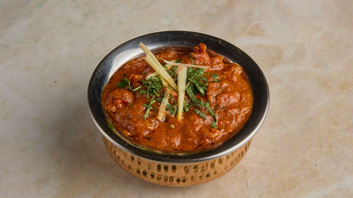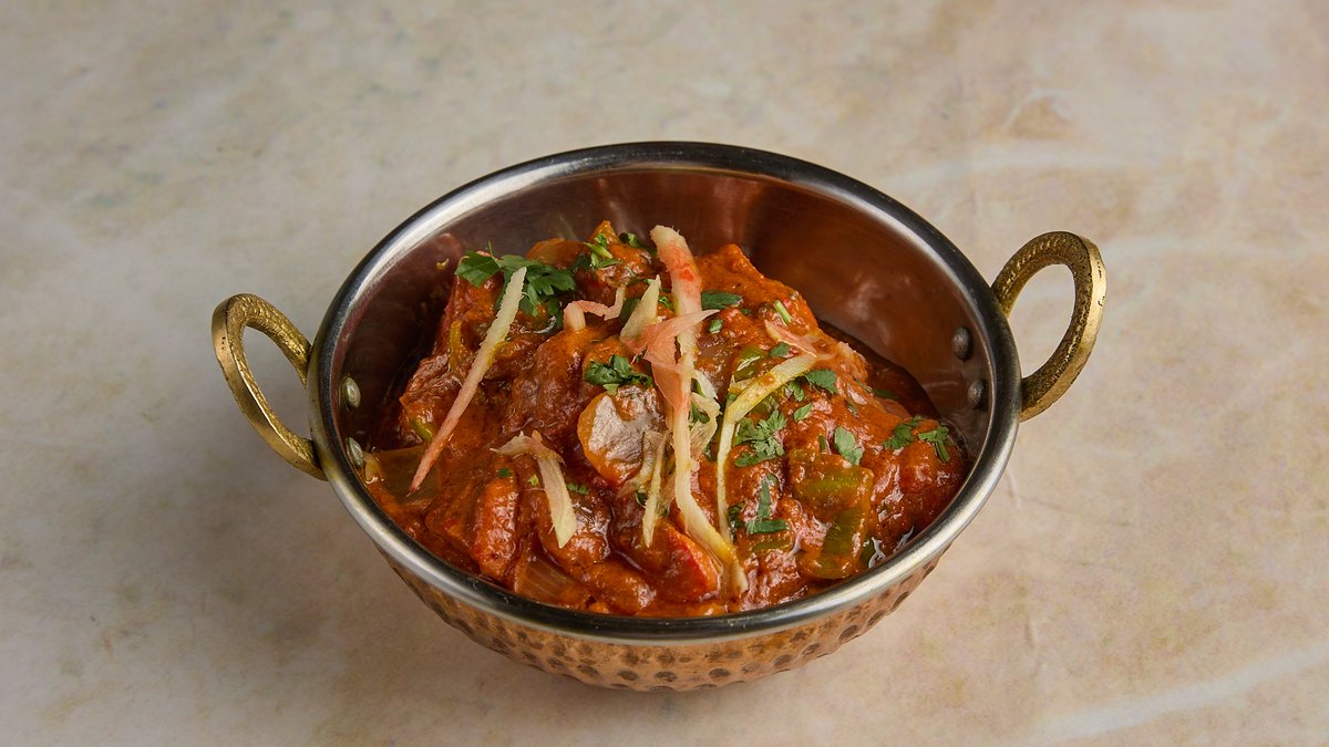 Tender lamb cooked in a shallow pan with a sauce of tomato, onion, ginger, garlic and served on a traditional Indian dish