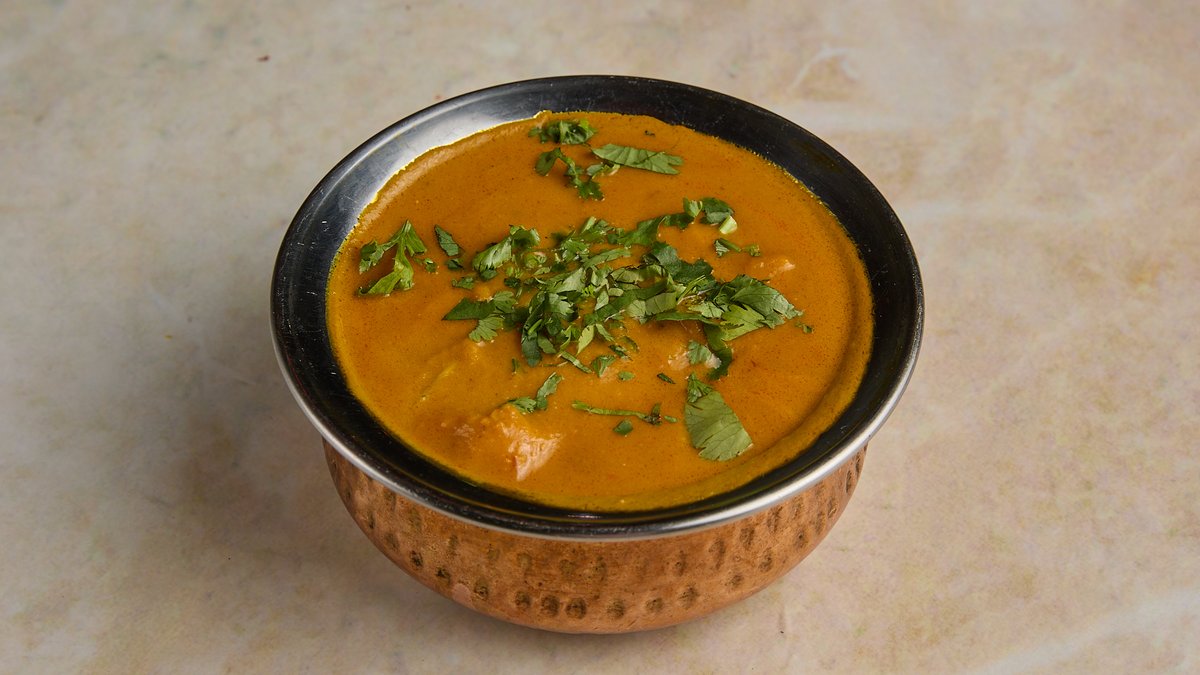 Chicken tika cubes cooked in a mild tomato sauce, butter and cream in the end