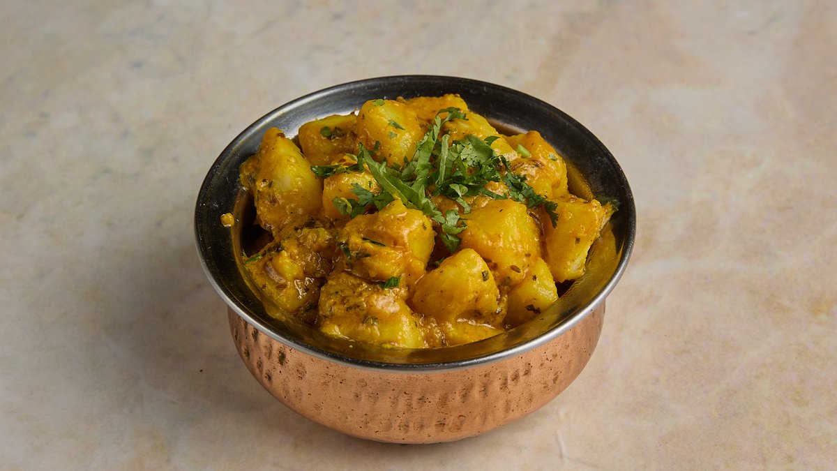 Chicken cooked with vindaloo sauce consisting of a series of hot spices and potatoes