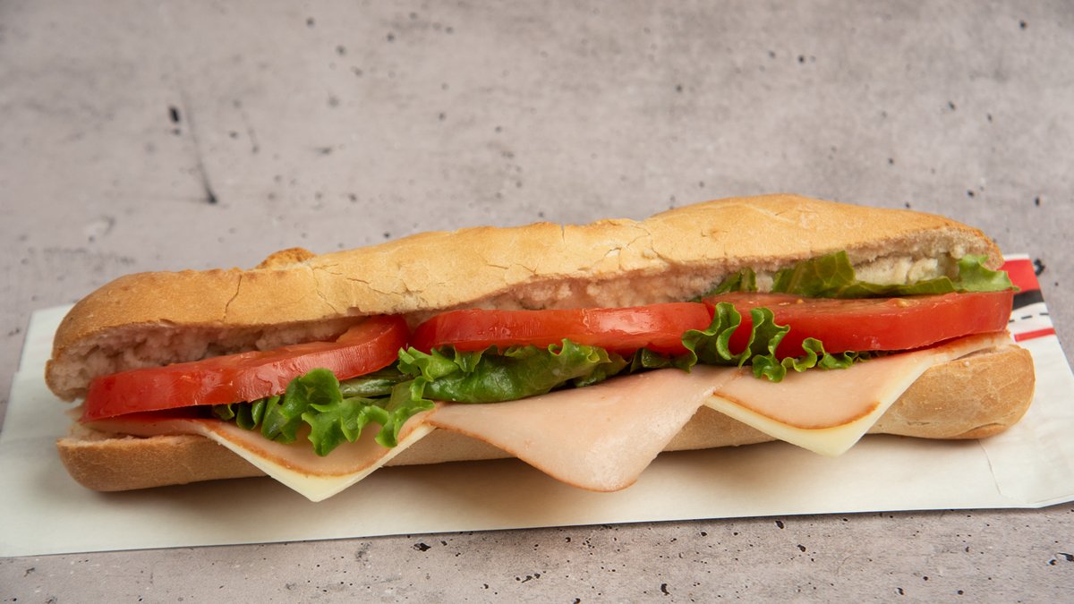Με γαλοπούλα, gouda, μπέικον, ντομάτα, μαρούλι και μαγιονέζα. Συνοδεύεται από πατάτες τηγανητές