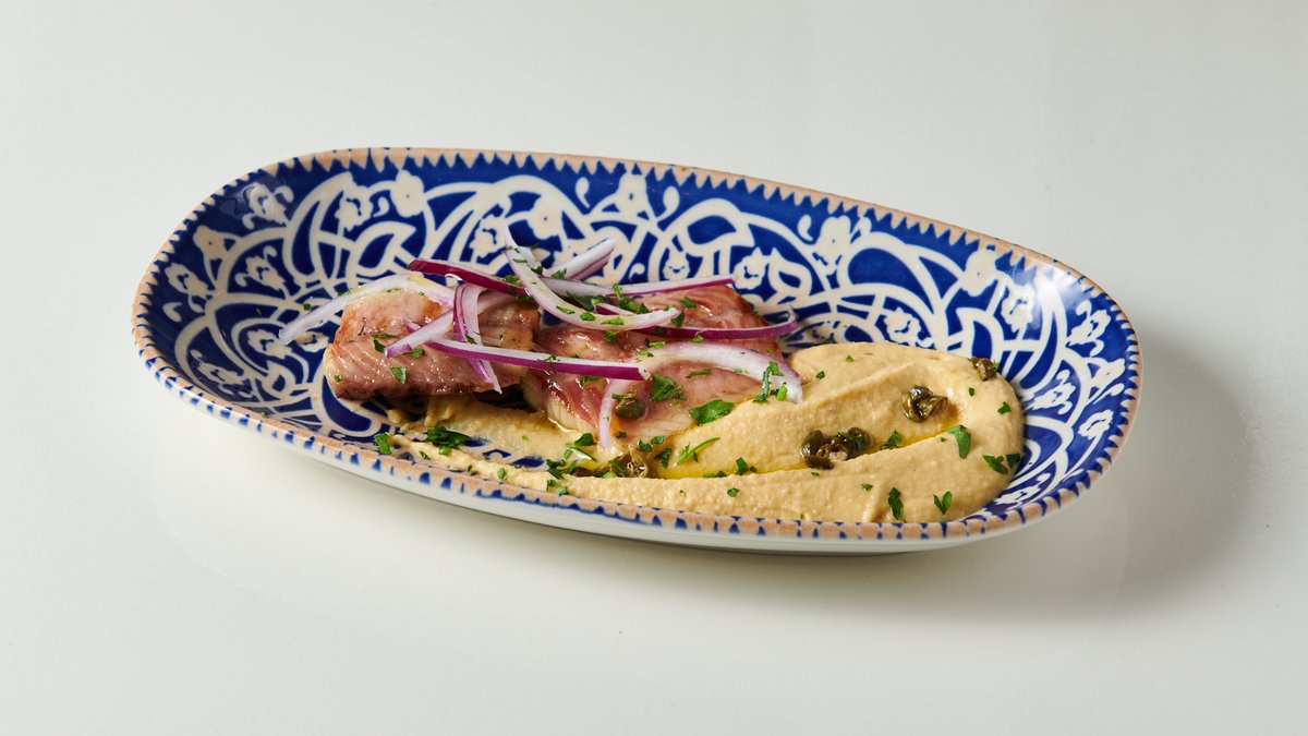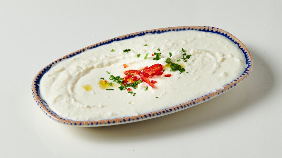 Με κόκκινη πιπεριά, κρεμμύδι ξερό, άνηθο, σάλτσα ταραμά